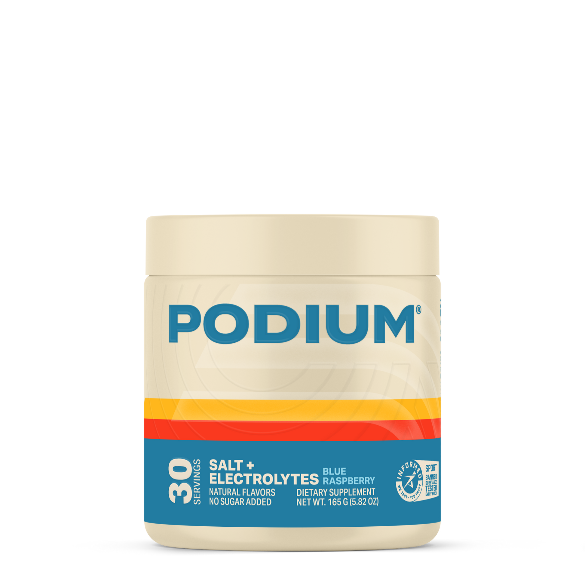 PODIUM® SALT+ELECTROLYTES quickly replenishes electrolytes lost during high intensity or endurance training. SALT+ELECTROLYTES delivers 850mg of electrolytes per serving with Taurine to regulate electrolyte ratios in the body. Complete with Calcium, Magnesium, Sodium, and Potassium salts.